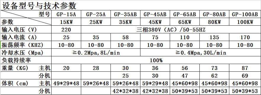1. 設備功率從15-100kw。